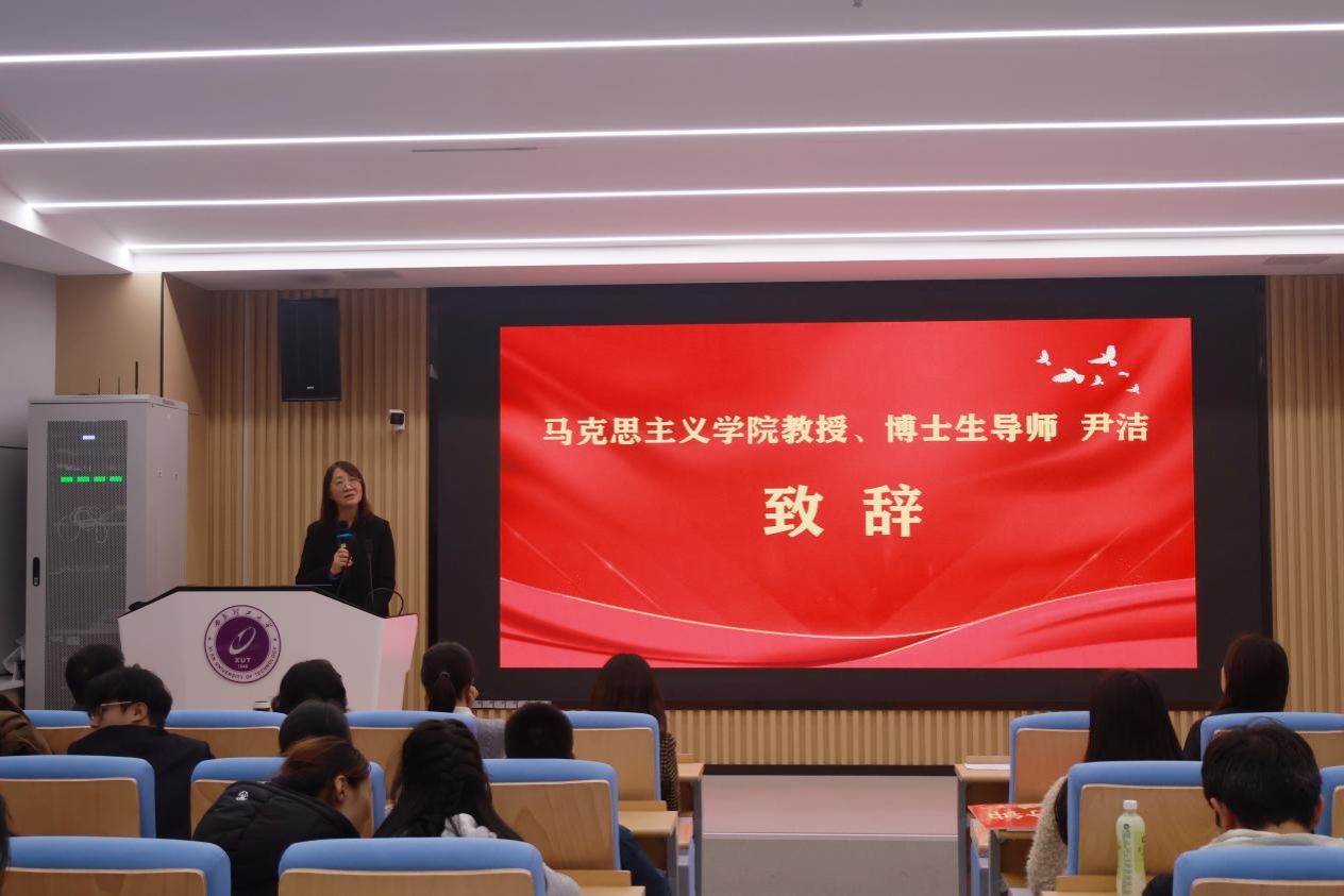 活动伊始,尹洁教授为比赛致辞。她指出,“求是”杯演讲赛已连续举办十余年,是学院推动思政课教学模式创新的重要品牌项目,该赛事覆盖面与持续性兼具,影响力与实效性并举,形成了特色鲜明的实践育人成果。她向所有晋级决赛的队伍表示祝贺,并寄语同学们坚定理想信念、勇担时代使命,在实践中锤炼本领、提升综合素养。