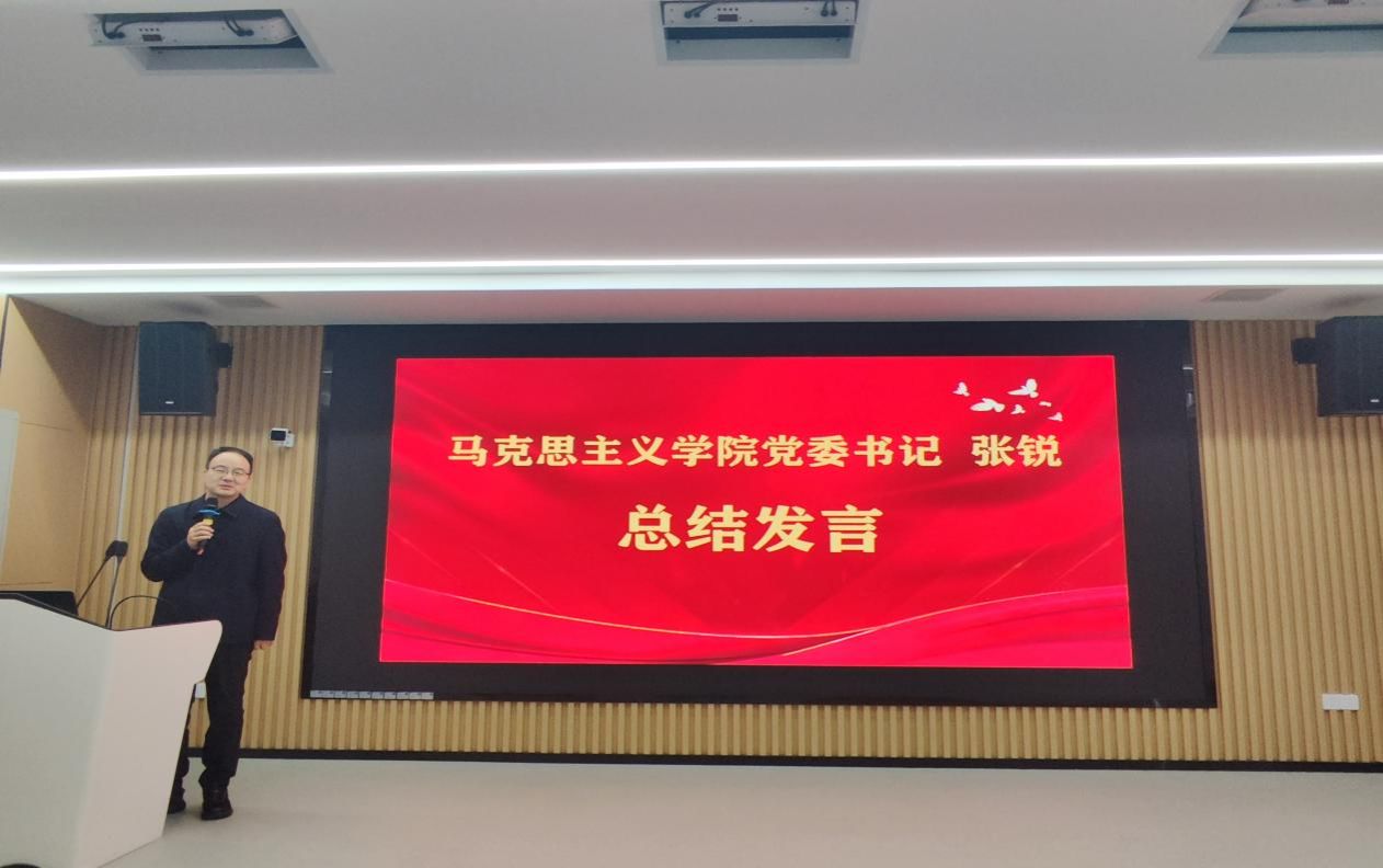最后,学院党委书记张锐作总结发言。他强调,“求是”杯演讲赛作为思政课改革的重要载体,既是同学们展示自我、锻炼能力的平台,更是推进“大思政课”建设、创新实践教学的有效途径。今后学院将持续拓展思政课实践形式,丰富育人内涵,努力把思政课建设成为学生真心喜爱、终身受益的优质课程。