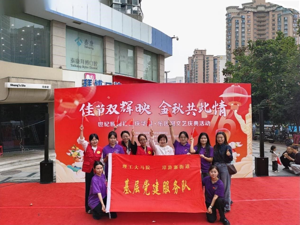 中秋逢国庆,家国共团圆。为庆祝中华人民共和国成立76周年暨传统中秋佳节,9月26日上午,漳浒寨街道世纪颐园社区举办“佳节双辉映,金秋共此情”庆华诞·乐团圆文艺庆典活动。我院基层党建服务队积极响应社区号召,组织志愿者参与其中,以实际行动践行高校服务基层的责任担当,为社区居民送上别样的节日祝福。