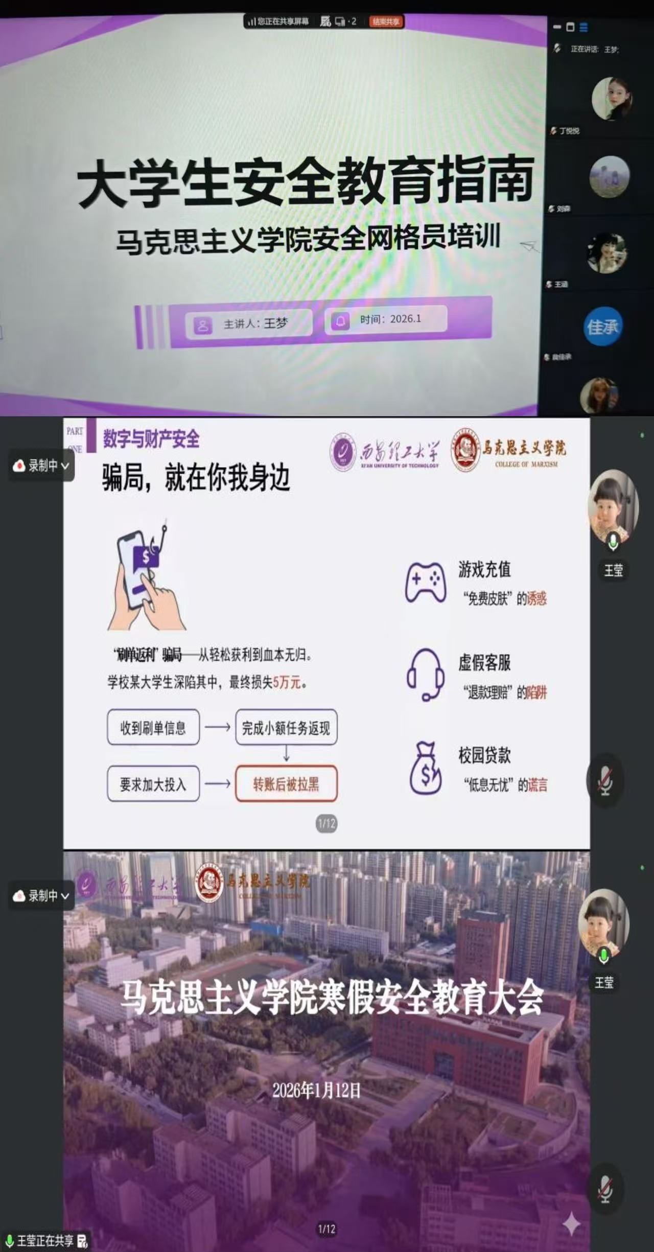 为切实做好寒假期间学生安全教育管理工作,进一步提升学生安全防范意识,2026年1月12日和14日,伟德bevictor中文版各年级分别组织召开了寒假前安全教育暨安全网格员培训会。